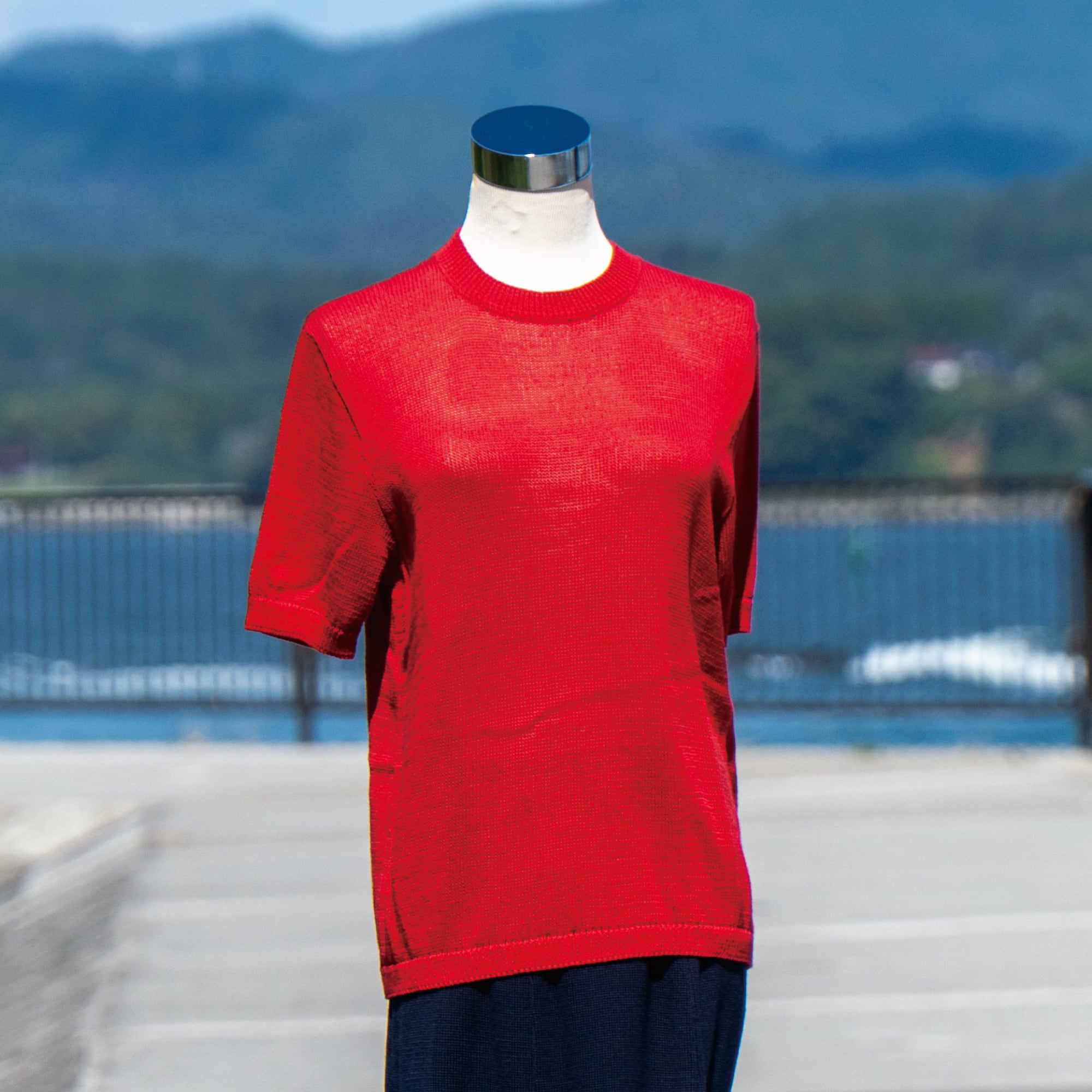シンプルな丸首デザインながら、着たときのラインが美しく出るよう、体にきれいに沿うシルエットにこだわりました。