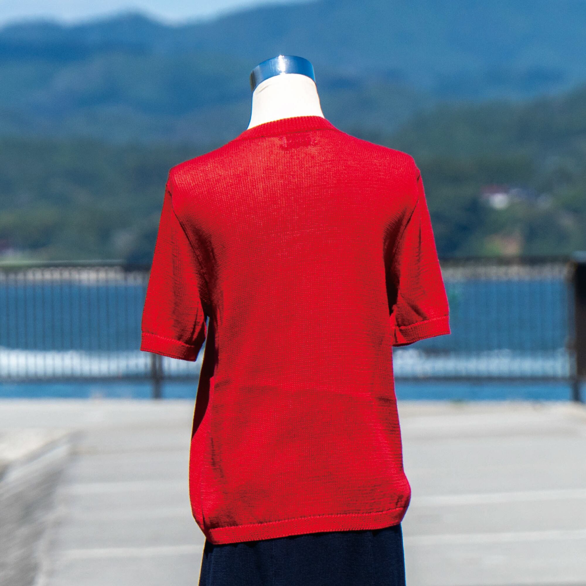 昔ながらの家庭用編み機を使って、1枚ずつ丁寧に編み上げた、ニットTシャツです。