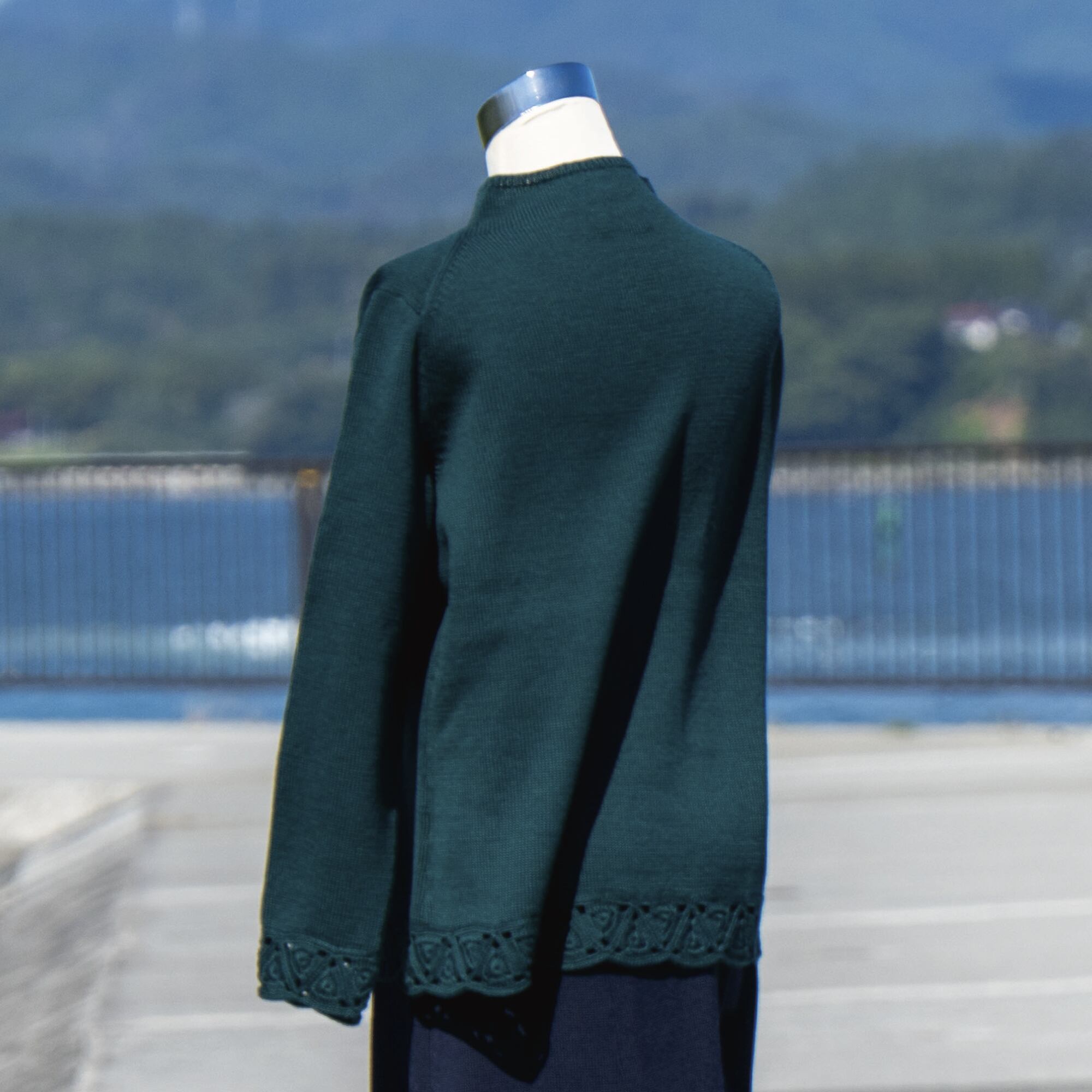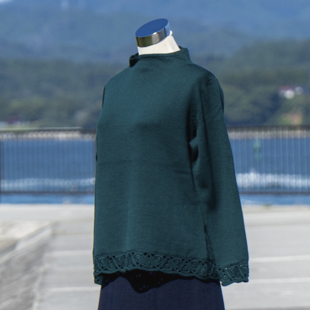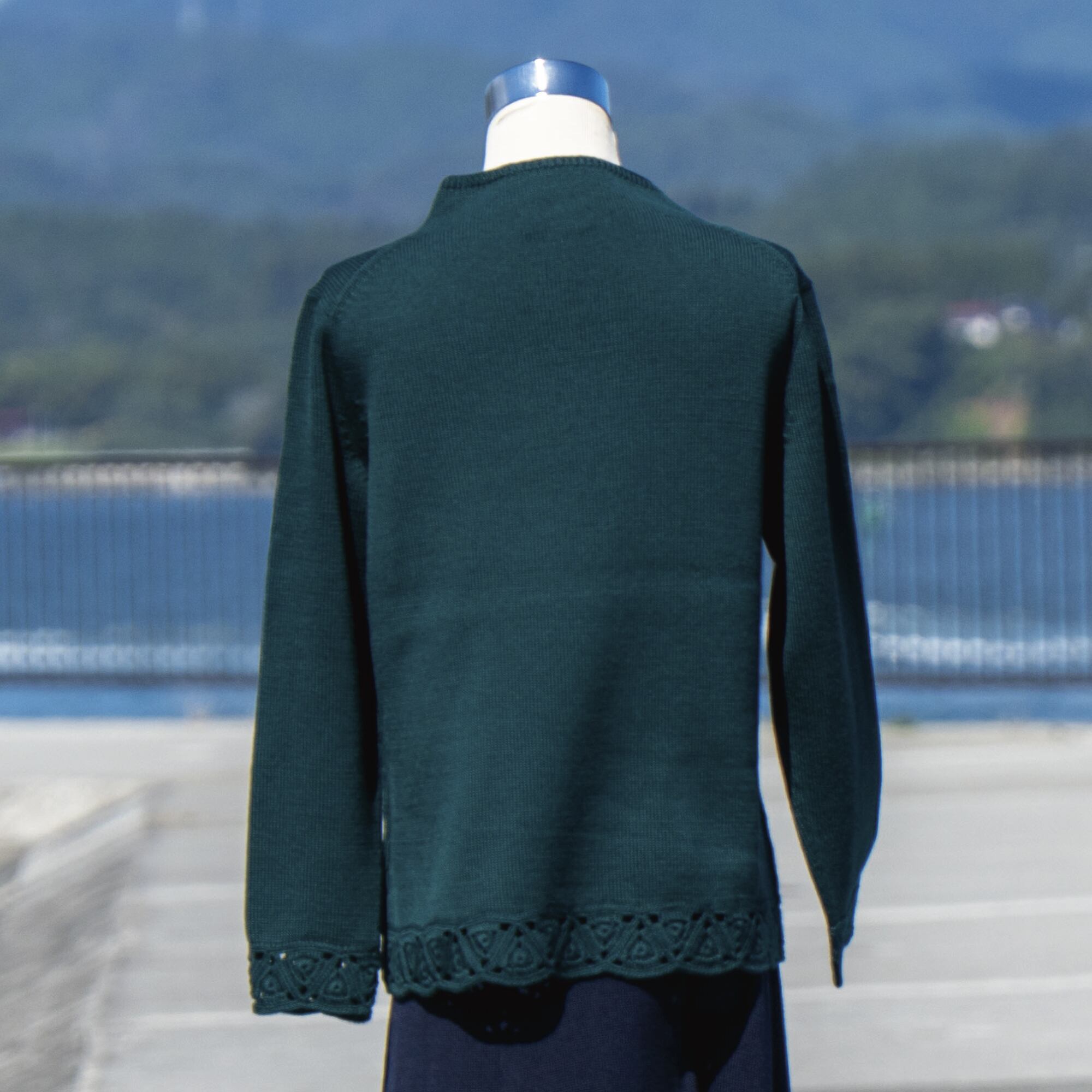 袖口を手編みのモチーフ編みで仕上げました。ジャケットから覗くモチーフの部分がアクセサリのように主張します。