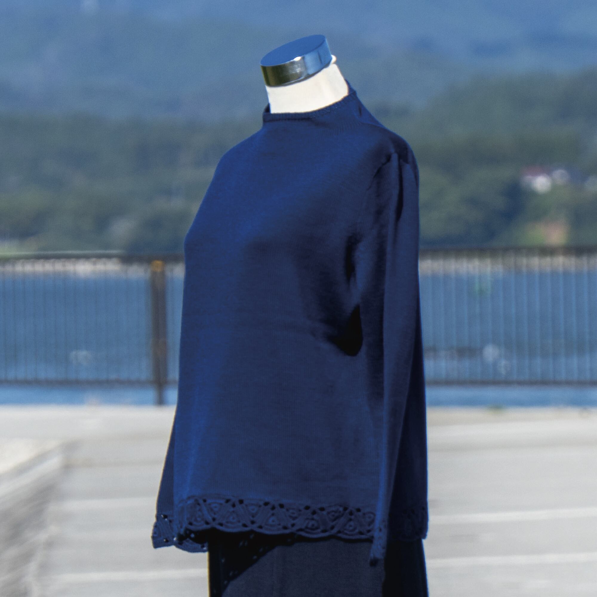 袖口を手編みのモチーフ編みで仕上げました。ジャケットから覗くモチーフの部分がアクセサリのように主張します。